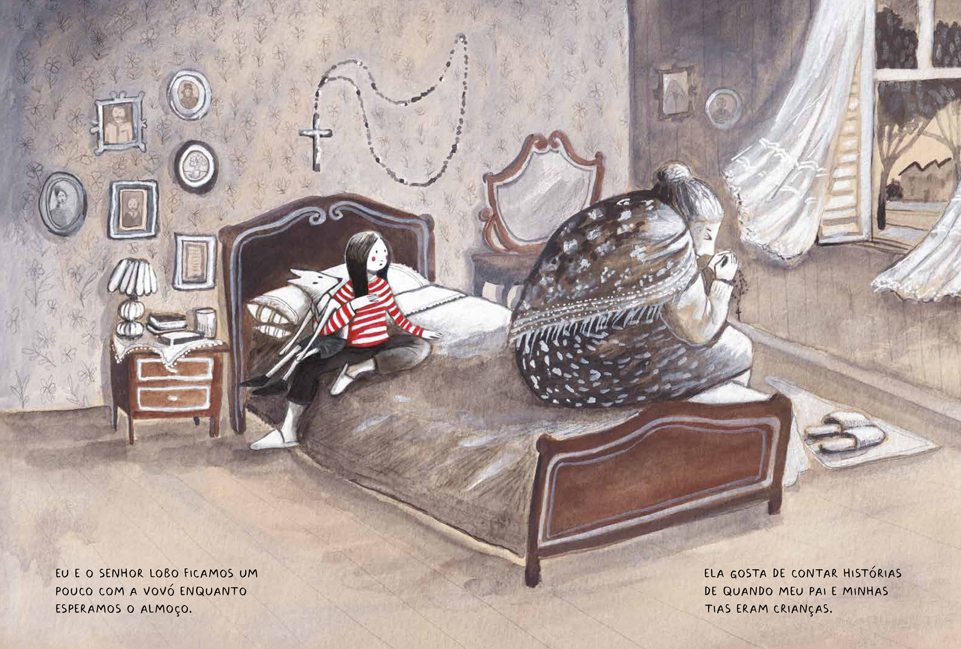 Todos nós temos um cantinho onde nos sentimos bem. Para a protagonista dessa história, esse lugar é a sua casa, que abriga o afeto da família, sua coleção de revistas, a bicicleta que ganhou no Natal e seu melhor amigo, o Senhor Lobo. Mas a paz que encontra em seu lar deixou de existir em seu país, então algumas escolhas difíceis precisam ser feitas por ela e seus pais - inclusive ter que deixar tudo o que conhece para trás. Com sutileza, equilibrando texto e imagens para construir uma narrativa completa o livro mostra as consequências de governos ditatoriais no cotidiano de uma família a partir do ponto de vista de uma criança. Indicado para leitores a partir de 6 anos.