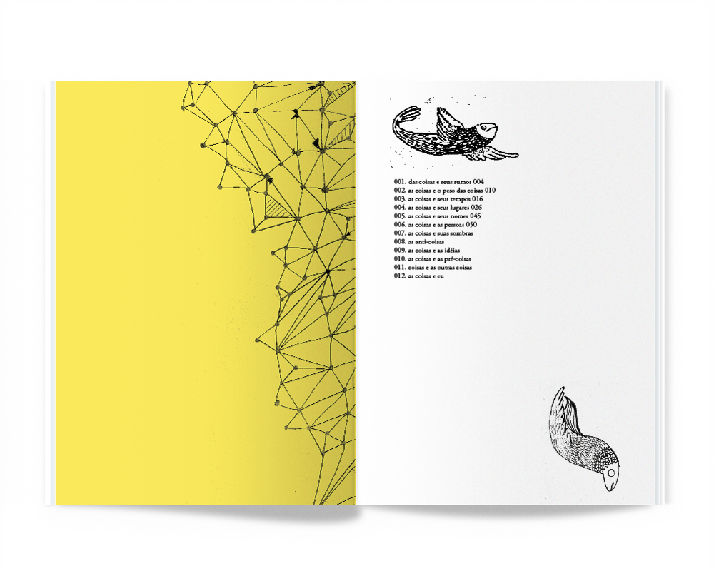 Started in 2010, As Coisas Todas (All the Things) proposes a poetic inventory of the world. Through small classifications — such as “things and their origins,” “things and love,” or “things and people” — the work explores the urge to name, organize, and understand reality through affective, subjective, and often absurd relationships. Made up of short texts and drawings, it first appeared as a presentation at Pecha Kucha Night São Paulo. Years later, it was published as a zine by La Tosca press. Mixing humor, lyricism, and observations of everyday life, the project reflects on things — all of them — and the (impossible, yet necessary) attempt to put them in order.