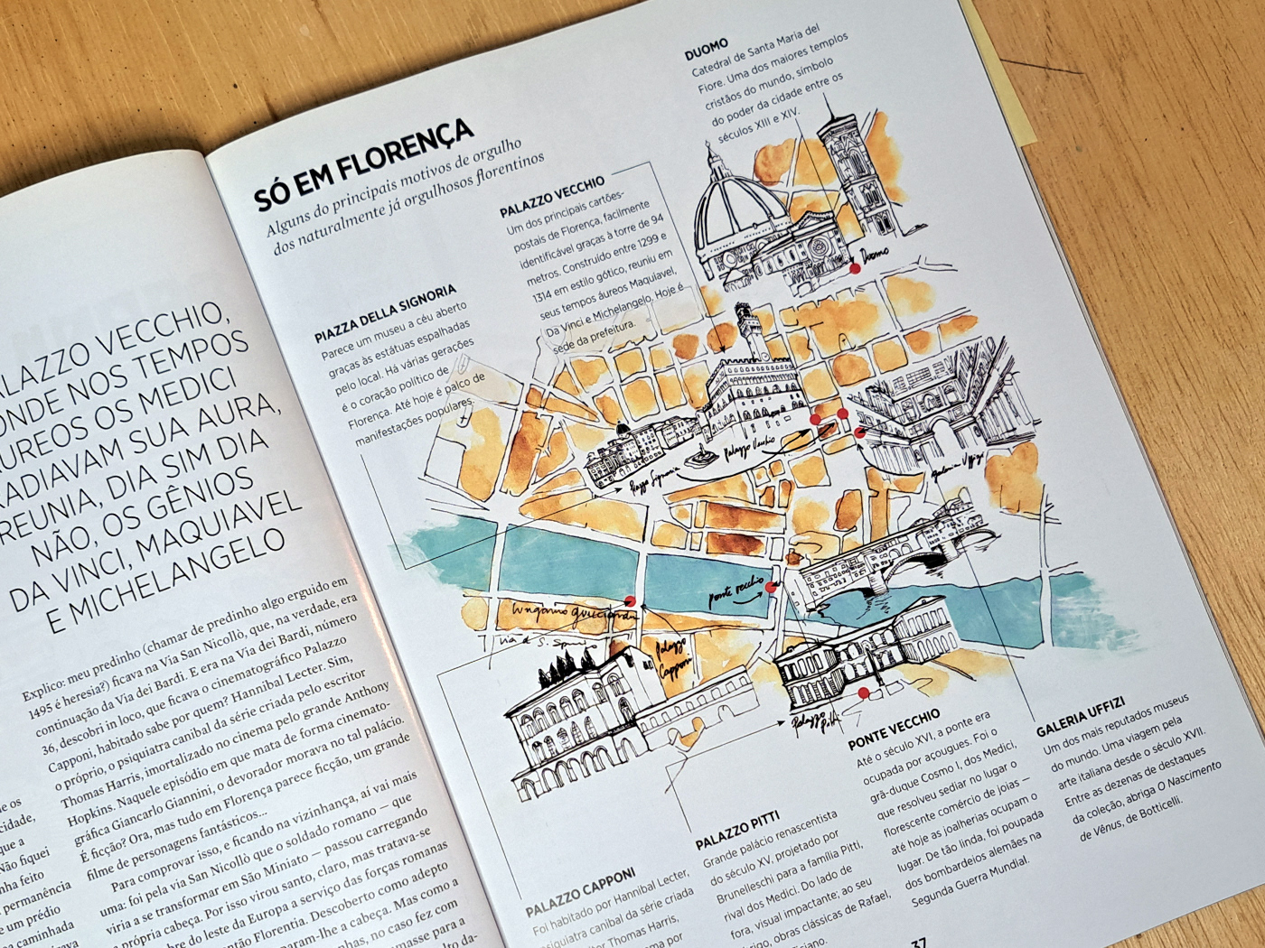 Ilustração para matéria da revista Itaú Personnalité sobre a cidade de Florença (Itália), na visão do jornalista, produtor cultural e consultor na área de comunicação Luiz Caversan.