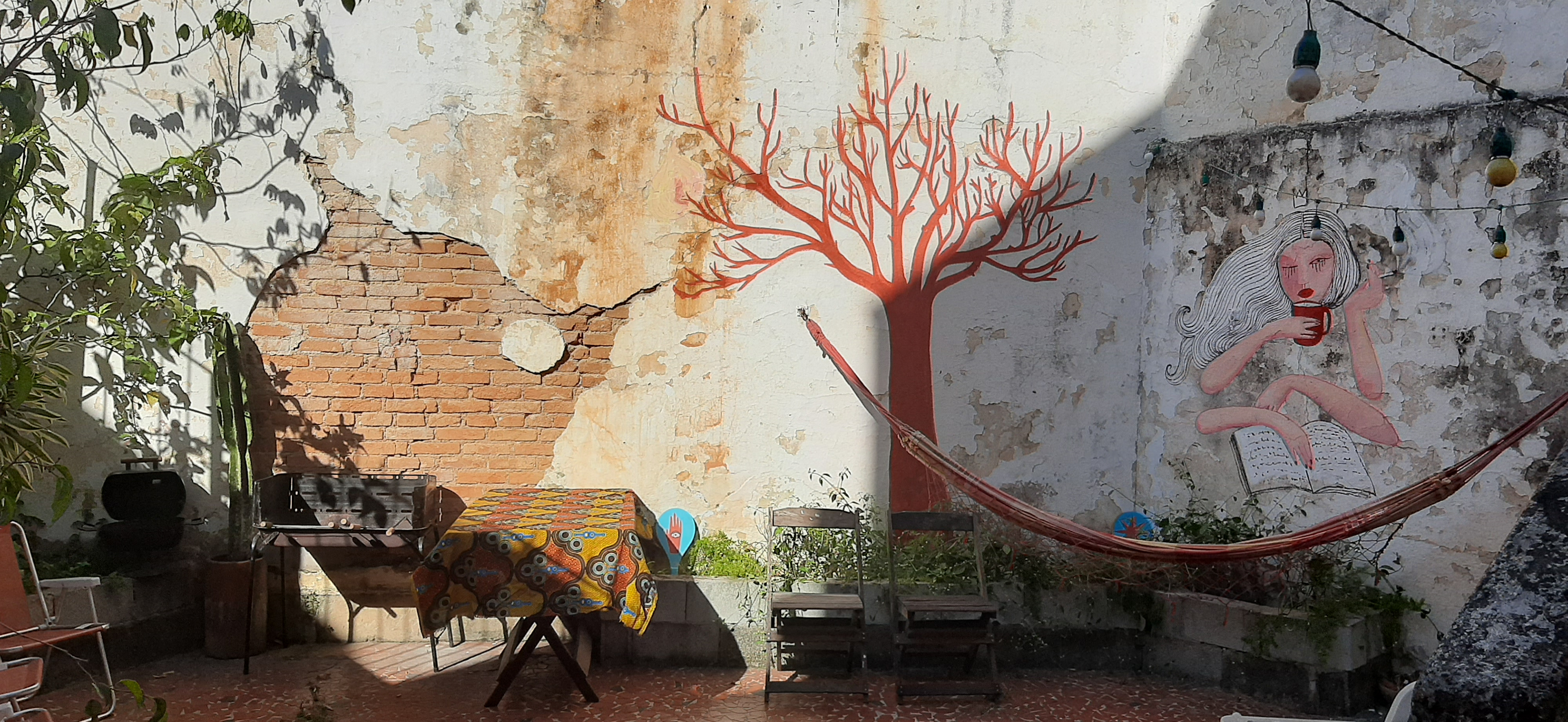 Intervenção em parede residencial. Tinta acrílica e marcador permanente.