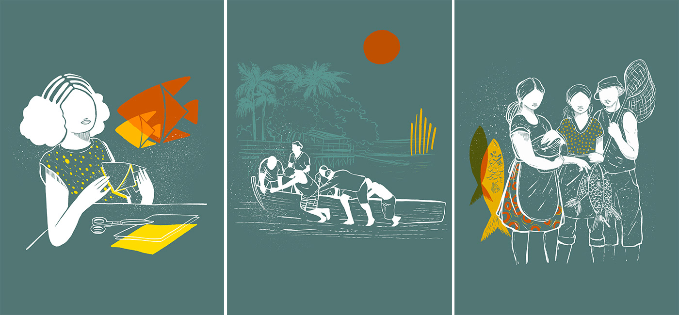 Illustrations and art direction for the book "Fisherman's History: A dossier on traditional fishing on the coast of Pernambuco", which is the result of three training processes in heritage education, offered to teachers and managers of the public school network in the municipalities of Itamaracá Island, Goiana and Cabo de Santo Agostinho in the state of Pernambuco. The guide uses traditional artisanal fishing as a device for valuing knowledge as a Brazilian cultural heritage, especially that related to the ancient activity of interacting with the sea and its meanders, which is still alive in many communities in Brazil.