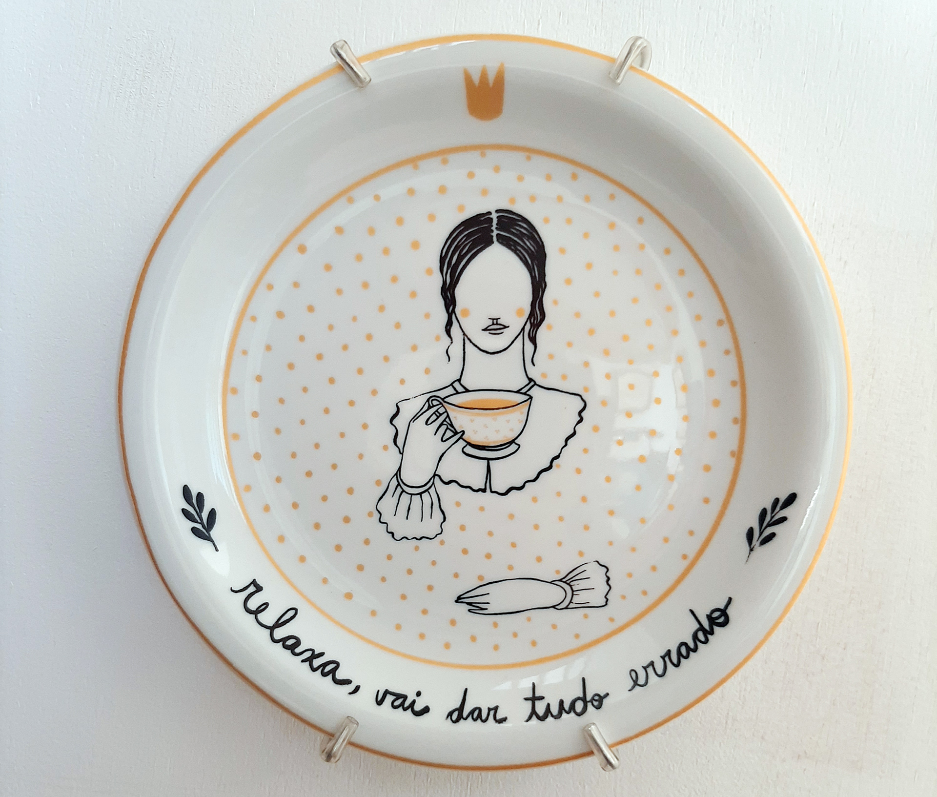 decalque preto e dourado sobre louça