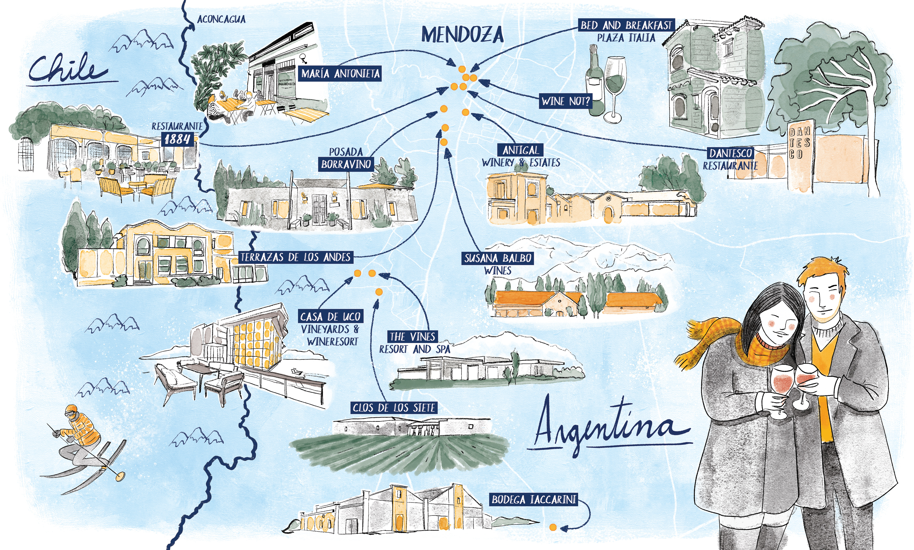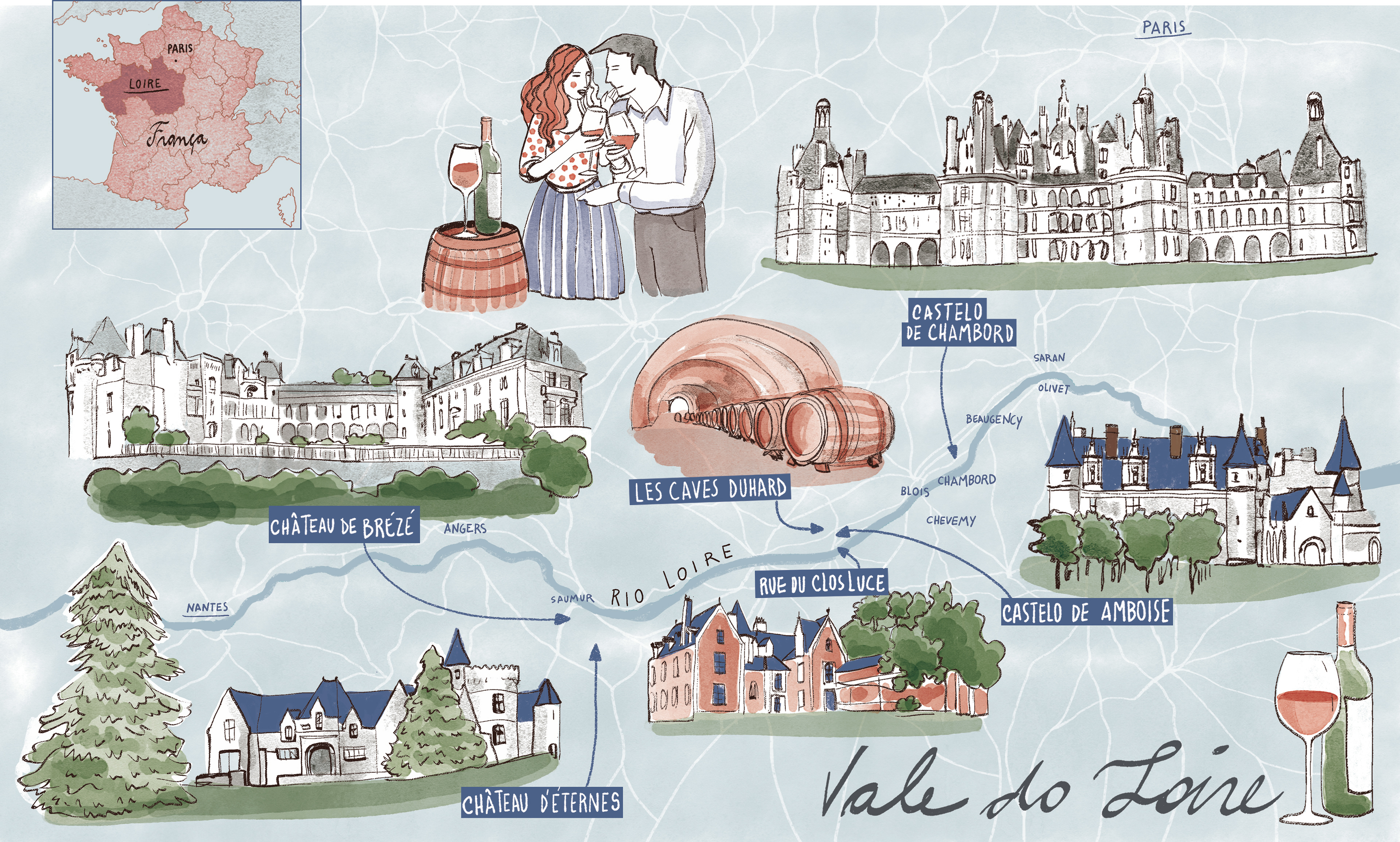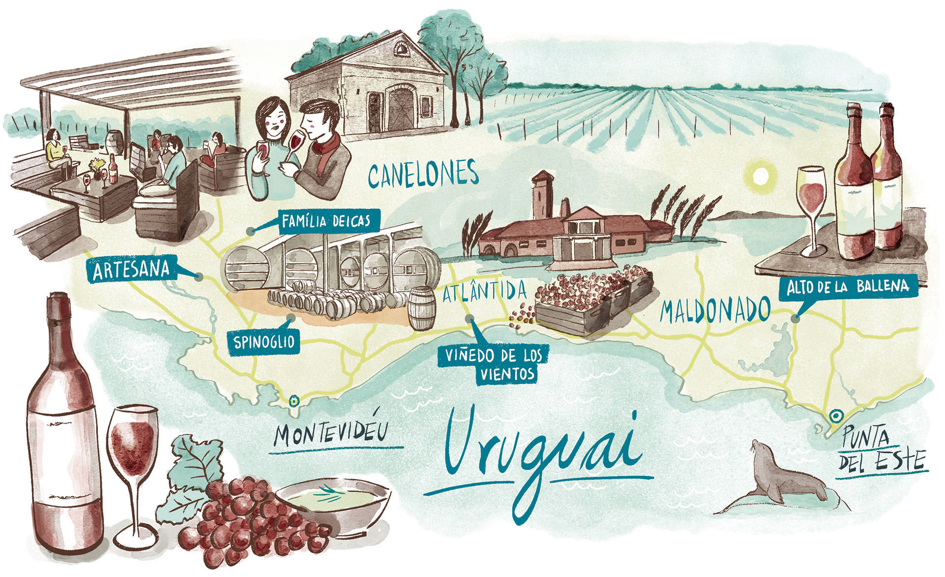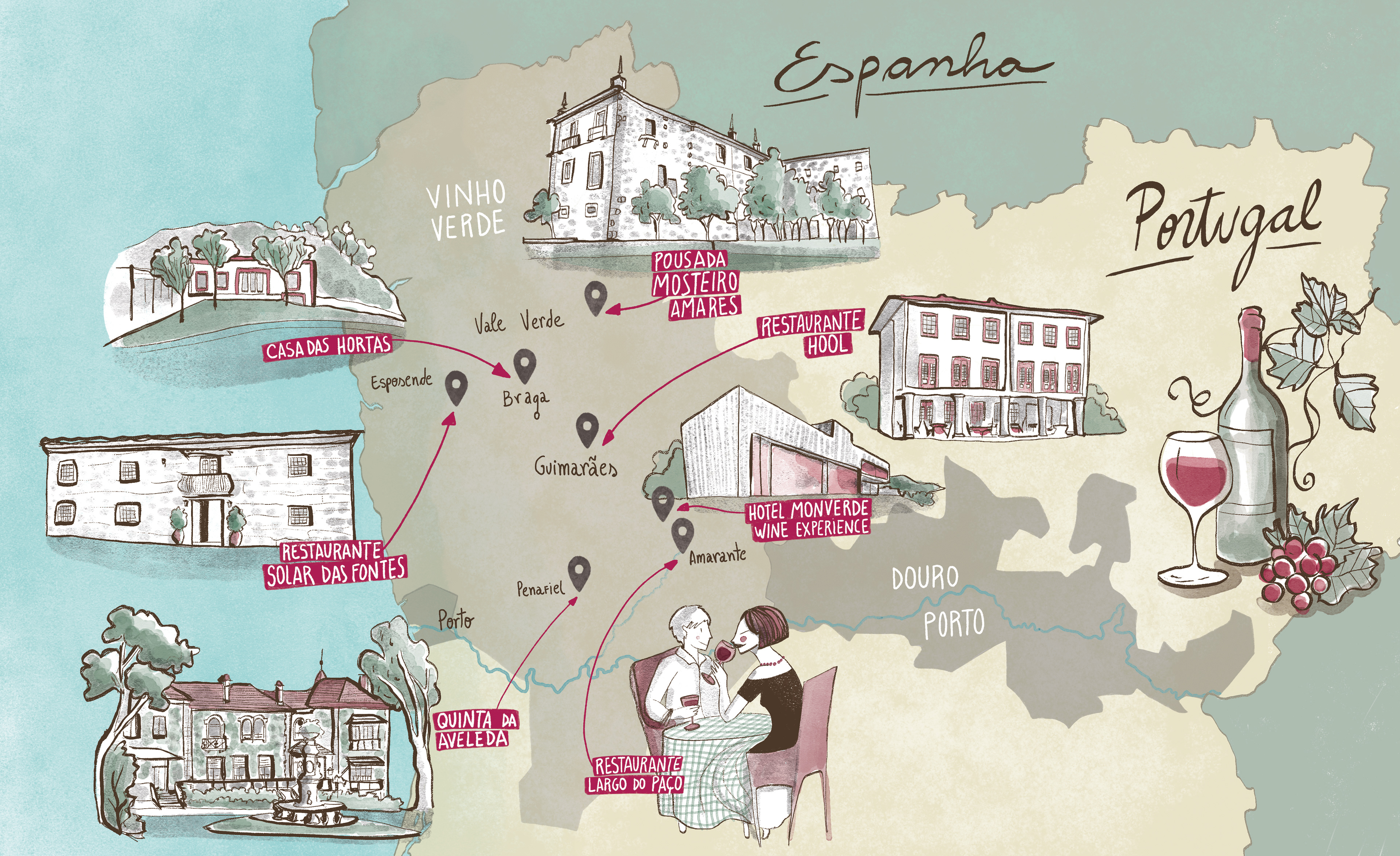 Mapas com rota de vinícolas para a revista Wine.
