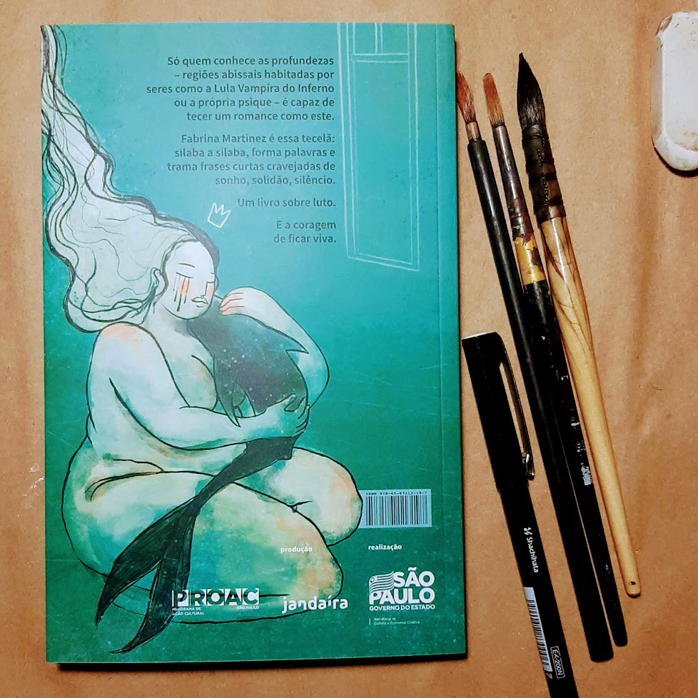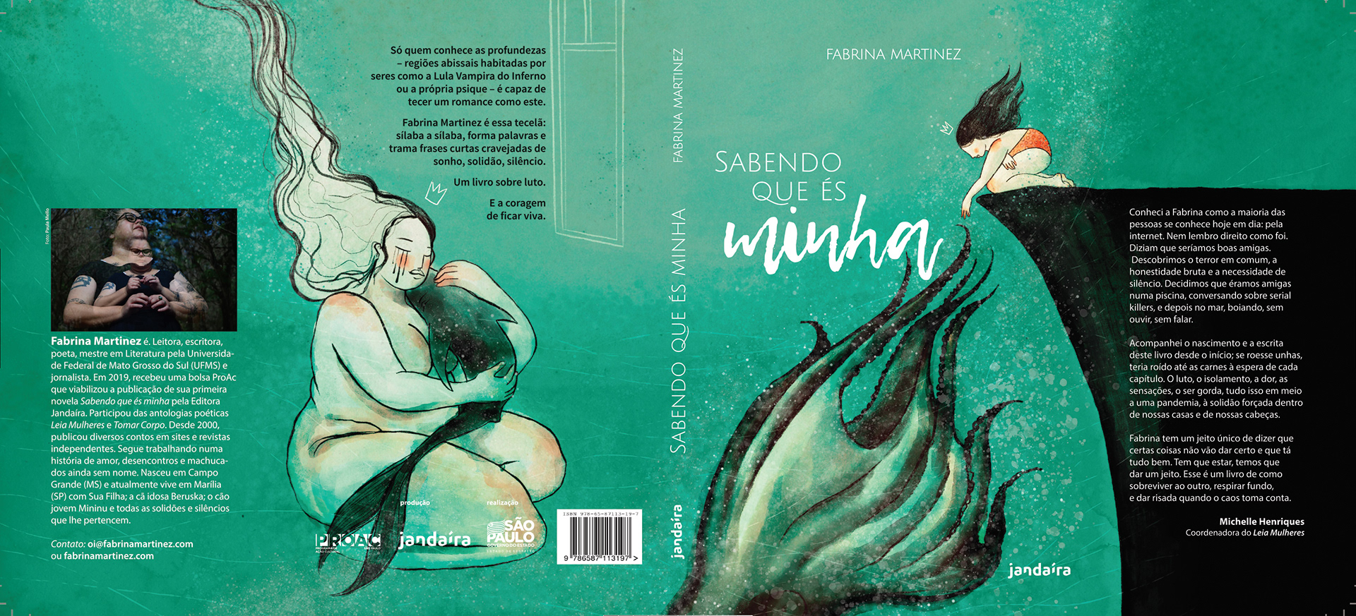 Capa do livro “Sabendo que és minha”, de Fabrina Martinez. Neste romance de autoficção, a autora vai às profundezas – regiões abissais habitadas por seres como a Lula Vampira do Inverno ou a própria psique – para tecer, sílaba a sílaba, as palavras que compõem frases cravejadas de sonho, solidão e silêncio. Este é um livro sobre luto. E sobre a coragem de permanecer viva.
