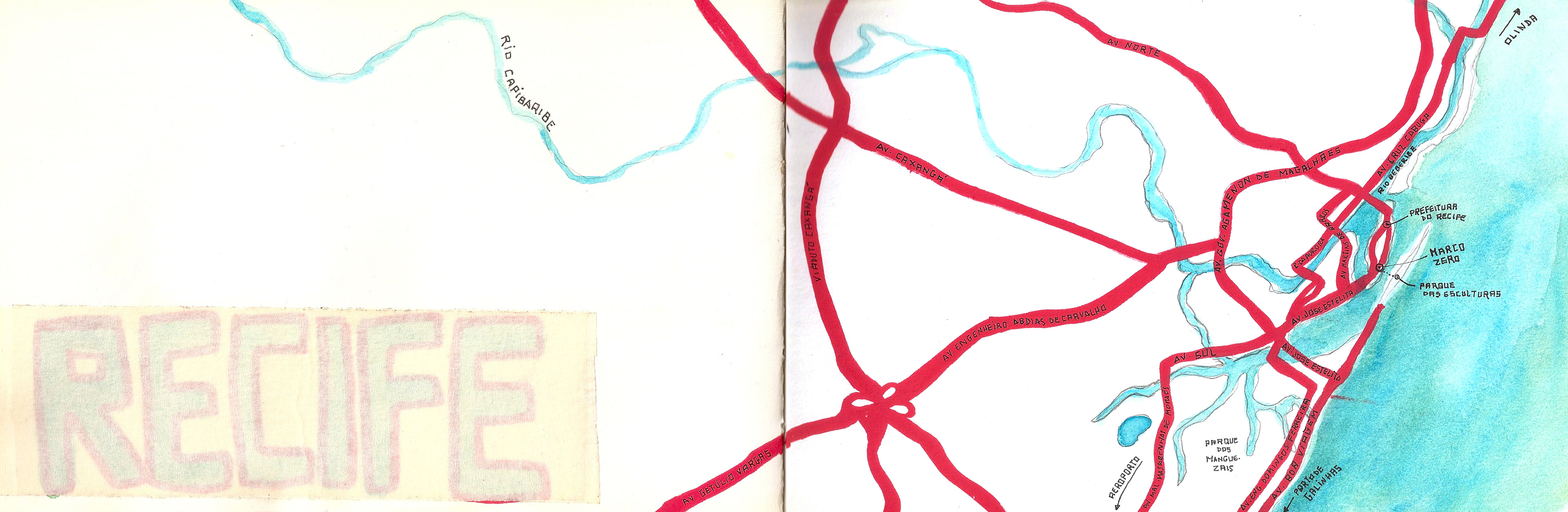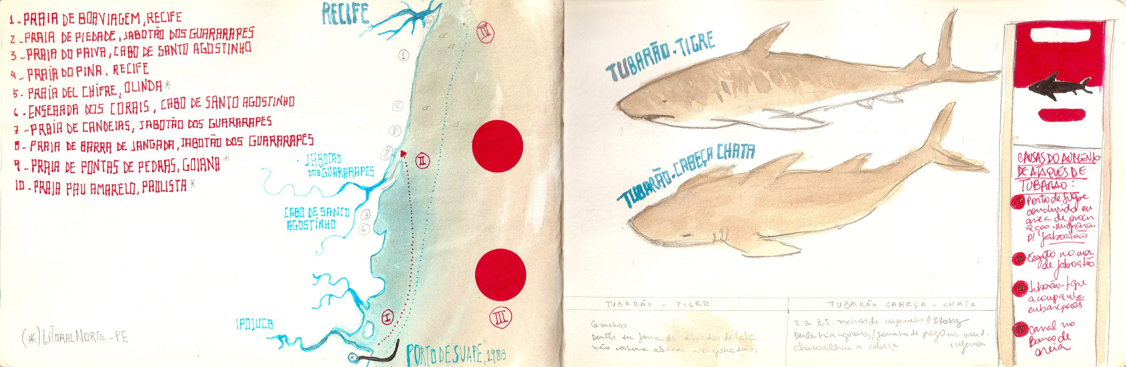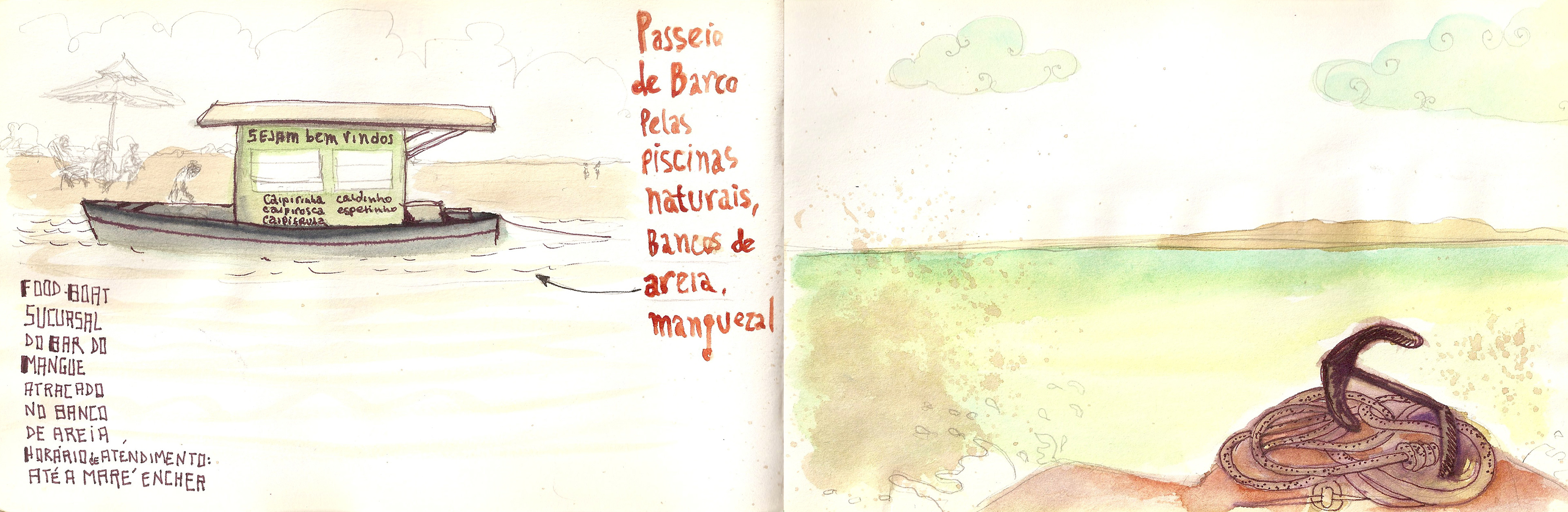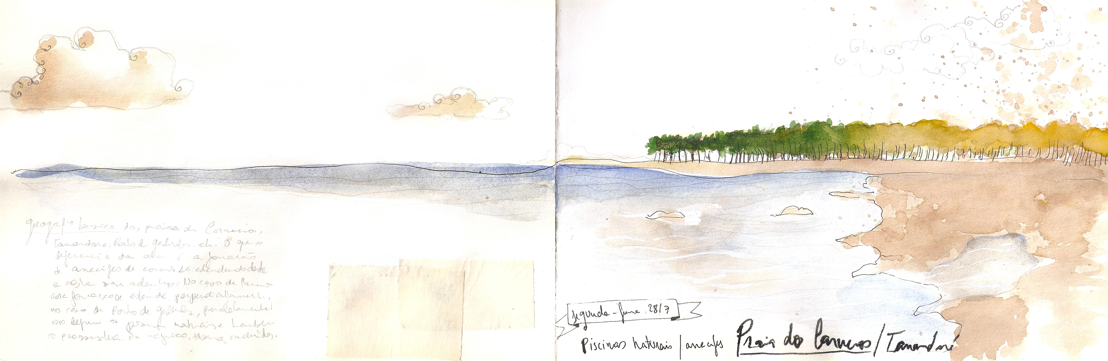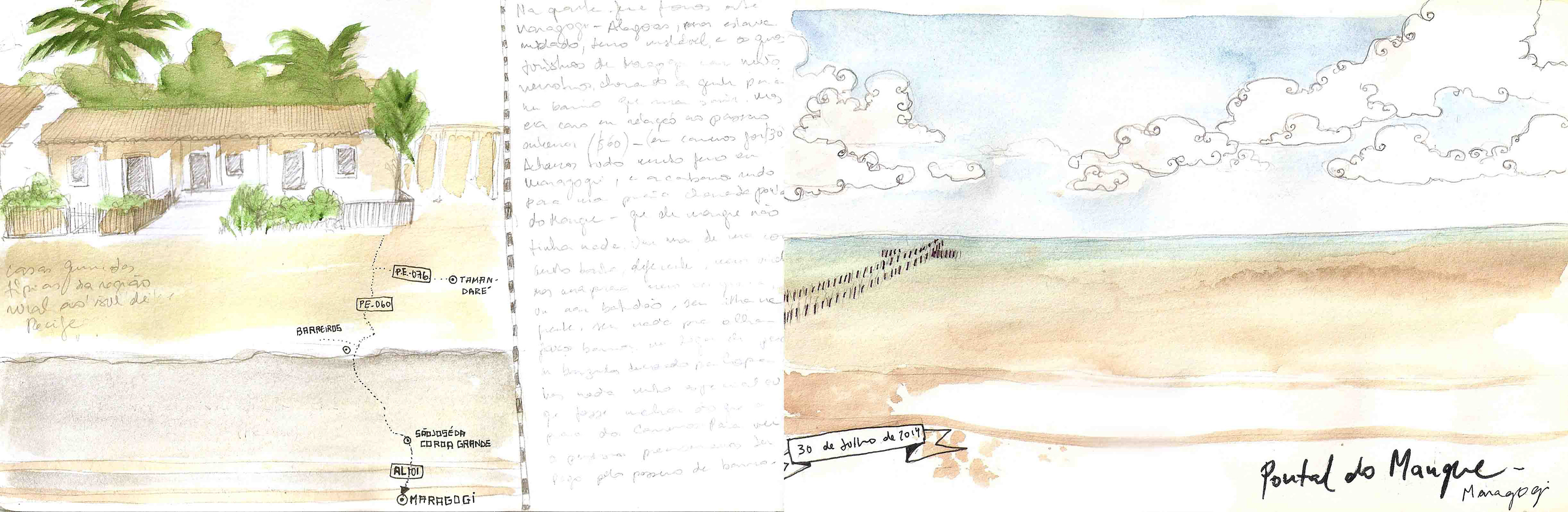 Caderninho de viagem que fiz em 2014 para Recife e Praia dos Carneiros, em Pernambuco, passando uma tarde em Maragogi, Alagoas.